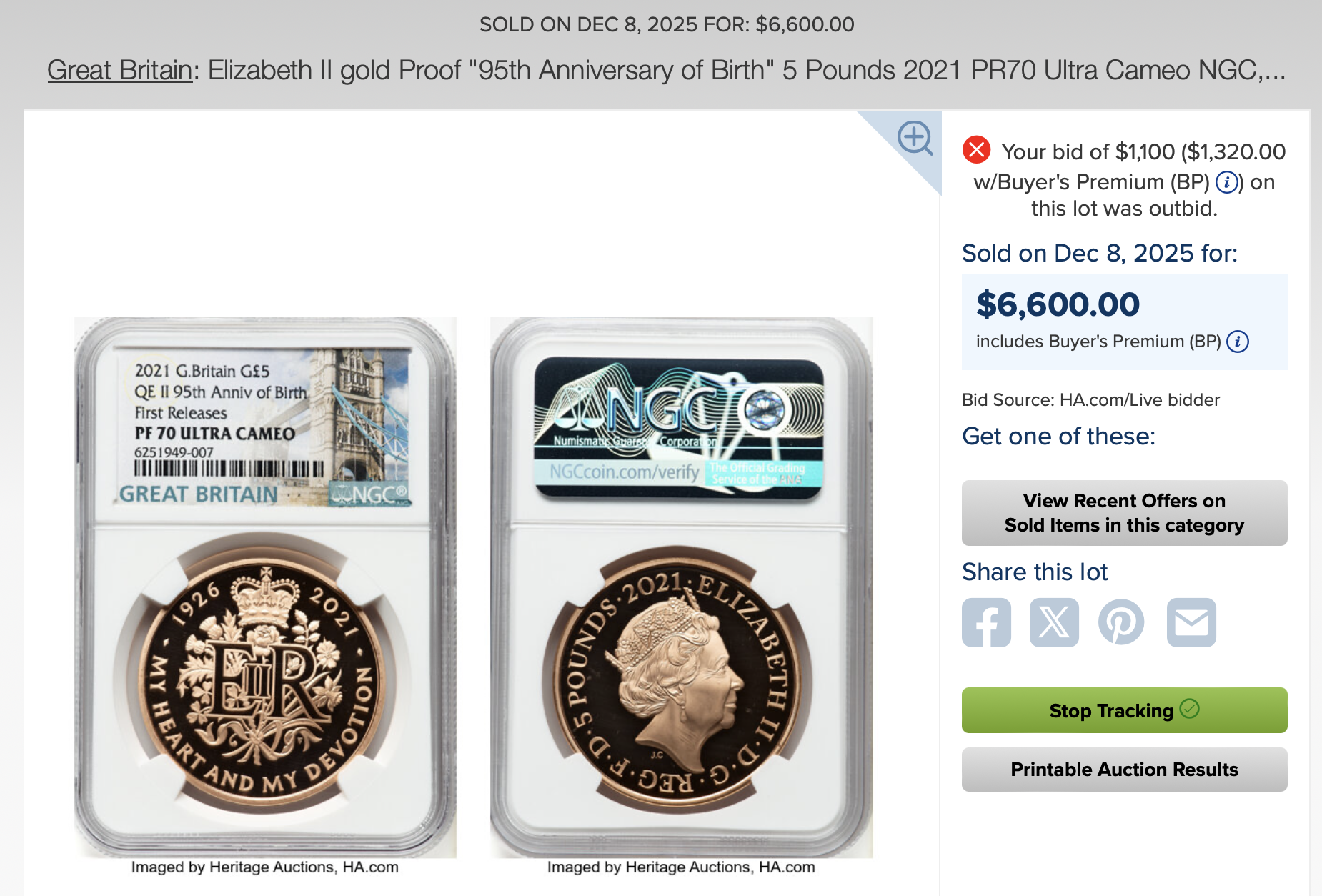 2025年12月にHeritage Auction において6,600ドル で落札されました、